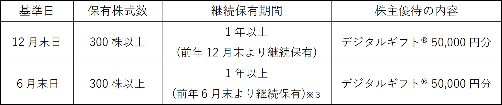 ※3:但し、株主優待制度導入初回である2026年6月末日の基準日においては、2025年12月末日より継続保有(6カ月以上継続して保有)