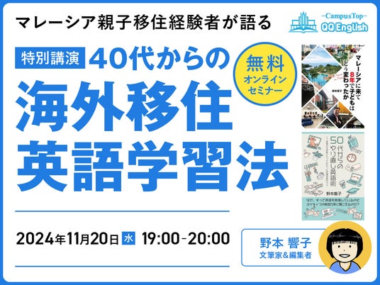 株式会社QQEnglish(本社:東京都渋谷区、代表取締役:藤岡頼光)は、2024年11月20日(水)19時から、文筆家・編集者の野本響子さんをお招きして無料オンラインセミナーを実施することをお知らせいたします。