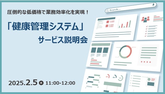 株式会社アドバンテッジリスクマネジメントは、2025年2月5日(水)に人事/総務/労務部門、健康経営/健康管理部門のご担当者様・責任者様および産保スタッフ様を対象としたWebセミナー「圧倒的な低価格で業務効率化を実現!『健康管理システム』サービス説明会」を開催いたします。本セミナーは健康診断業務における課題および健診システム導入のメリットを解説します。また、健診システムの選定ポイントもお伝えします。