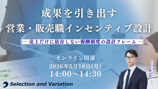 https://sele-vari.co.jp/ )は『成果を引き出す営業・販売職インセンティブ設計 ― 売上だけに依存しない報酬制度の設計フレーム ―』セミナーを2026年5月18日(月)14:00~14:30に開催することをお知らせいたします。