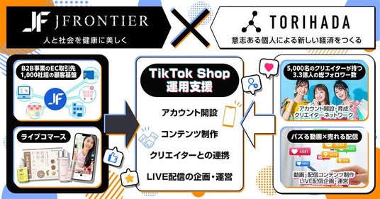 本提携は、当社が有するテレビショッピングにおける1日2億円規模のライブ販売実績や、SNSインフルエンサーを活用した販売ノウハウに、TORIHADA社が有するTikTok Shop領域における知見を活用し、クリエイターキャスティングおよびプロモーション動画制作におけるサービス強化を図るだけでなく、当社クライアント企業向けにTikTok等のショートムービープラットフォームを活用した新たなマーケティング支援の共同提案やパッケージ施策の開発を推進することで、当社B2B事業における1,000社規模の顧客基盤に対してTikTok Shop運用支援事業への集客を行いながら、B2B事業の更なる成長と企業価値の向上に努めてまいります。