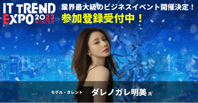 特別ゲストとして、モデル・タレントのダレノガレ明美氏の登壇が決定しましたことをお知らせします。