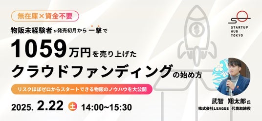株式会社LEAGUE(本社:東京都武蔵野市)は、新しいビジネスモデルを探している経営者や副業を検討中の方々に向けた無料セミナー『【無在庫×資金不要】物販未経験者が発売初月から一撃で1059万円を売り上げたクラウドファンディングの始め方』を2025年2月22日(土)、TOKYO創業ステーションにて開催します。