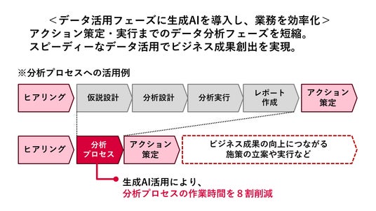 - 業務効率化で創出した時間にて、新たに、データを活用したビジネス成果の向上につながる施策の立案や実行など高度化も実現