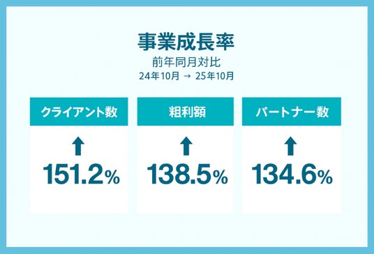 直近では、成果型広告領域においてクライアント数・粗利額・パートナー数が前年同月比で増加しており、成果管理や売上貢献の可視化に対するニーズが一段と高まっています。特にアフィリエイト施策において、この伸長が顕著になっています。