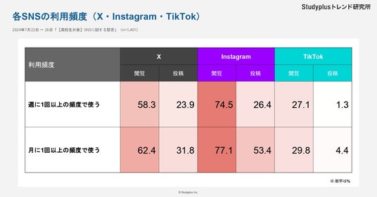 スタディプラス株式会社(本社:東京都千代田区、代表取締役:廣瀬高志、以下スタディプラス)のStudyplusトレンド研究所は、2024年7月22日(月)から7月26日(金)にかけて学習管理アプリ「Studyplus」上で全国の高校生を対象に「SNSに関する調査」を実施、1,401名から回答を得た中でInstagramの利用傾向に着目した結果をご報告いたします。