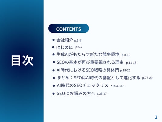 また、AIに最適化されたコンテンツ作成や技術的なSEOの見直しについても紹介しています。最新のSEOトレンドに対応した戦略を採り入れたいと考えている方にはおすすめの内容です。