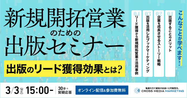 株式会社クロスメディア・マーケティングは3月3日(金)に企業様向けに「新規開拓営業ための出版セミナー」を開催いたします。