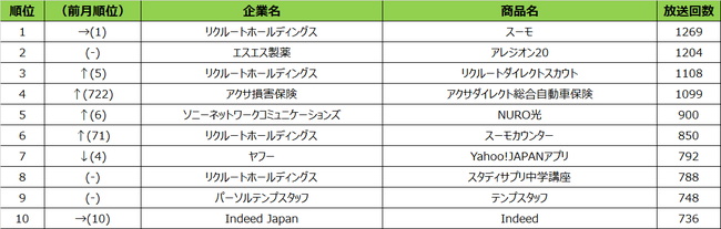 今月1位となったリクルートホールディングスは、3ヶ月連続で商品別ランキング1位となりました。2021年12月度は「リクルートダイレクトスカウト」(*1)、2022年1月度は「スーモ」(*2)と扱う商材は時期により異なり、リクルートホールディングスのビジネス領域の広さを示す結果となっています。