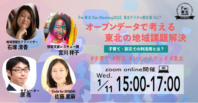 エイチタス株式会社(本社:東京都品川区、代表取締役:原 亮/小澤 剛)は、復興庁主催のワークショップ「Fw:東北(フォワードとうほく)Fan Meeting」にて、「東北デジタル創生塾 Vol.7 オープンデータで考える東北の地域課題解決 ~子育て・防災での利活用とは?」の企画運営を行い、1月11日午後に無料のZoomミーティングを開催します。