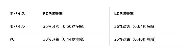 ※FCP(First Contentful Paint)…Webページで最初のコンテンツが表示されるまでの時間を示すパフォーマンス指標