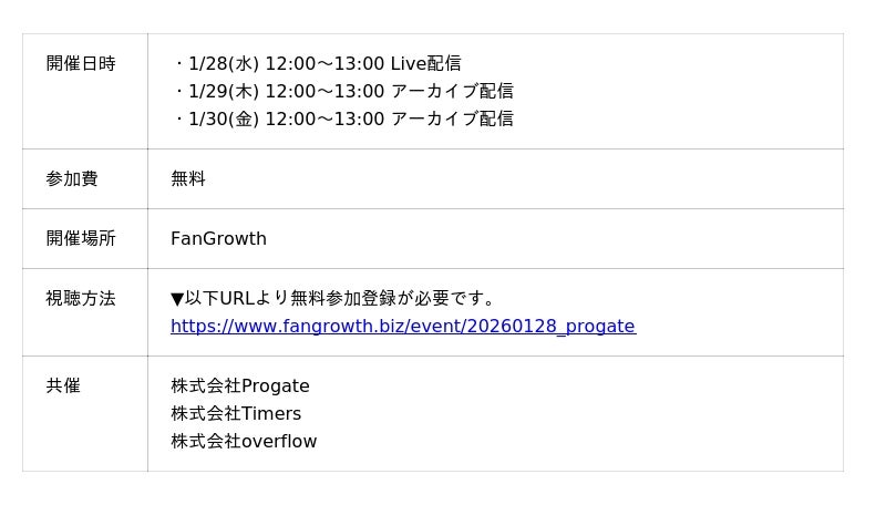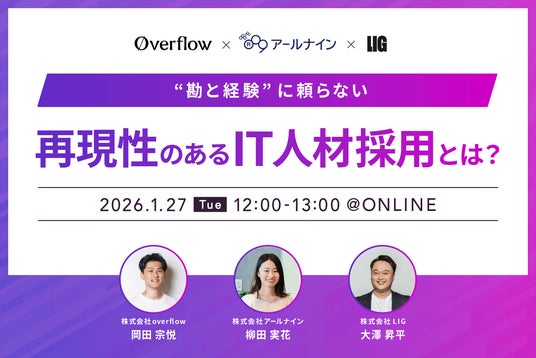 (株)overflow/Offers「グロース期のエンジニア採用、どう進める?事業成長を止めないための採用戦略と実行のリアル」を2026年1月28日(水)にライブ配信、1月29日(木)、30日(金)にアーカイブ配信します。