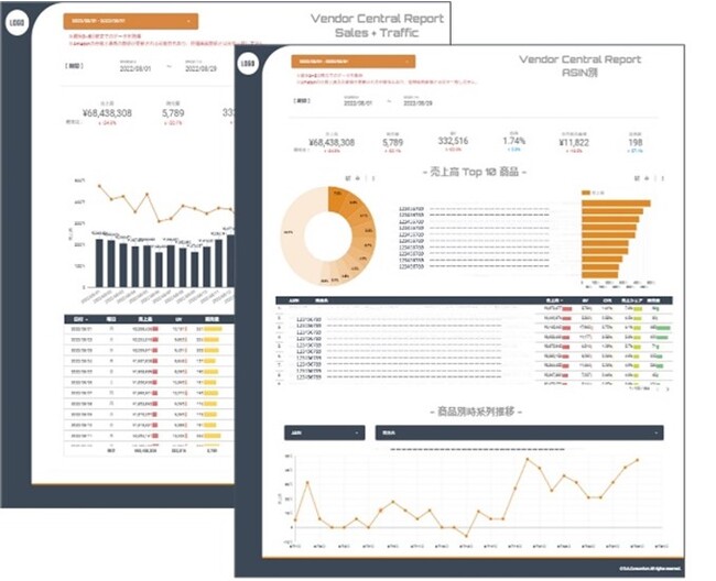 「クロコマボード」は、企業のECマーケティングにおける意思決定を多角的に支援する分析ダッシュボードです。Amazonを中心に、売上や広告レポート、商品情報やECモールのマーケットデータなど、各種APIに対応し複数のデータを一元管理することが可能です。これにより、点在するデータの集計工数を大幅に削減し、戦略立案や改善施策の分析に時間をかけることができます。本サービスでは、「CROSS COMMERCE Studio」が提供するコンサルティングサービスのベース機能として統合レポートを提供し、また、オプション(有料)でSOV分析や売れ筋ランキング分析などの機能も提供します。