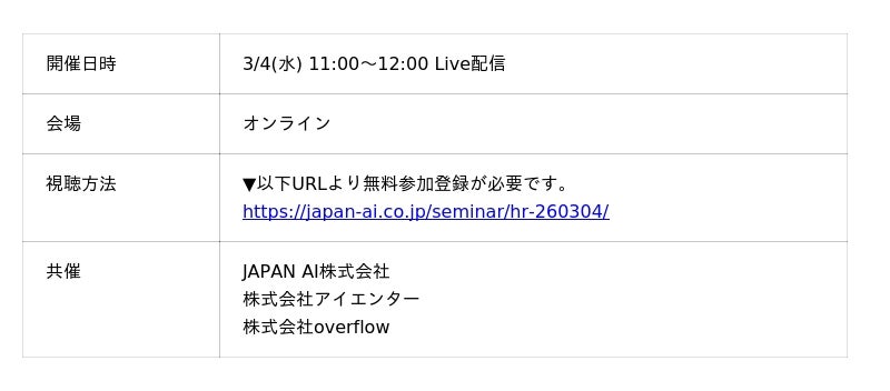 (株)overflow/Offers「中途採用業務×AI効率化 ~判断基準の複雑性を乗り越えるAIの使い方と設計のポイント~」を2026年3月4日(水)にライブ配信いたします。