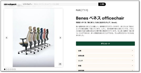 ■プラス社製のオフィスチェアのBIMデータ掲載イメージ( https://www.bimobject.com/ja/plus )