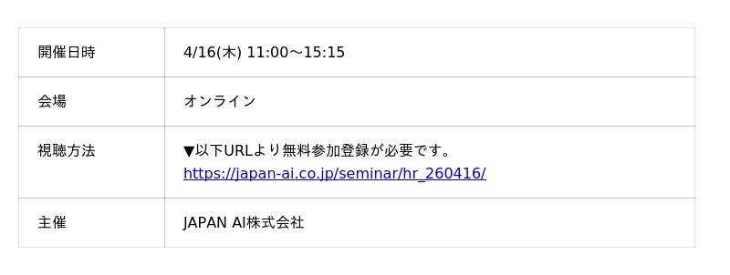 AI時代のエンジニア転職プラットフォーム「Offers(オファーズ)」を運営する株式会社overflow(本社:東京都港区、代表取締役:鈴木裕斗、以下 overflow)は、JAPAN AI株式会社主催のオンラインイベント「採用業務のAI導入、失敗しない選択肢 ~11社のプロが最短成果につながるノウハウを一挙公開~」に登壇いたします。