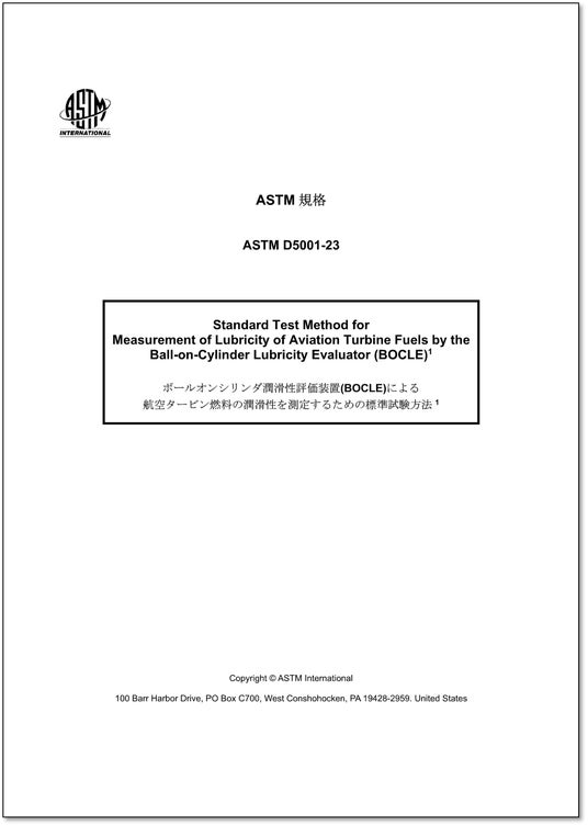 ASTM D5001 - 23「ボールオンシリンダ潤滑性評価装置(BOCLE)による航空タービン燃料の潤滑性を測定するための標準試験方法」▼規格情報
