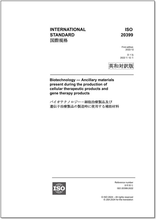 ご注文はこちらISO 20399:2022バイオテクノロジー-細胞治療製品及び遺伝子治療製品の製造時に使用する補助材料Biotechnology -- Ancillary materials present during the production of cellular therapeutic products and gene therapy products