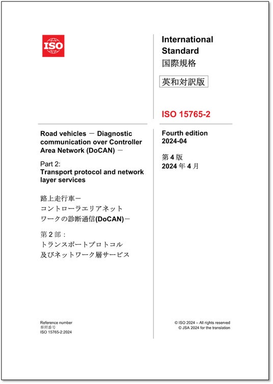 ISO 15765-2:2024「路上走行車-コントローラエリアネットワークの診断通信(DoCAN)-第2部:トランスポートプロトコル及びネットワーク層サービス」 ●