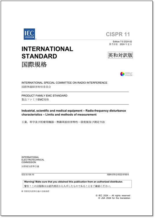 CISPR 11 Ed. 7.0:2024 (b)工業,科学及び医療用機器-無線周波妨害特性-限度値及び測定方法Industrial, scientific and medical equipment - Radio-frequency disturbance characteristics - Limits and methods of measurement