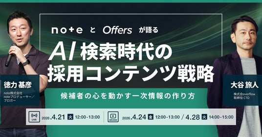 AI検索時代の採用コンテンツ戦略 ~noteとOffersが語る候補者の心を動かす一次情報の作り方~|4/21(火)・4/24(金)・4/28(火)開催