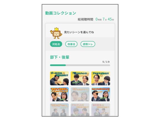 動画コレクション:学習可能な動画の視聴状況が一覧で確認できるため、効率よく次の動画に取り組めます