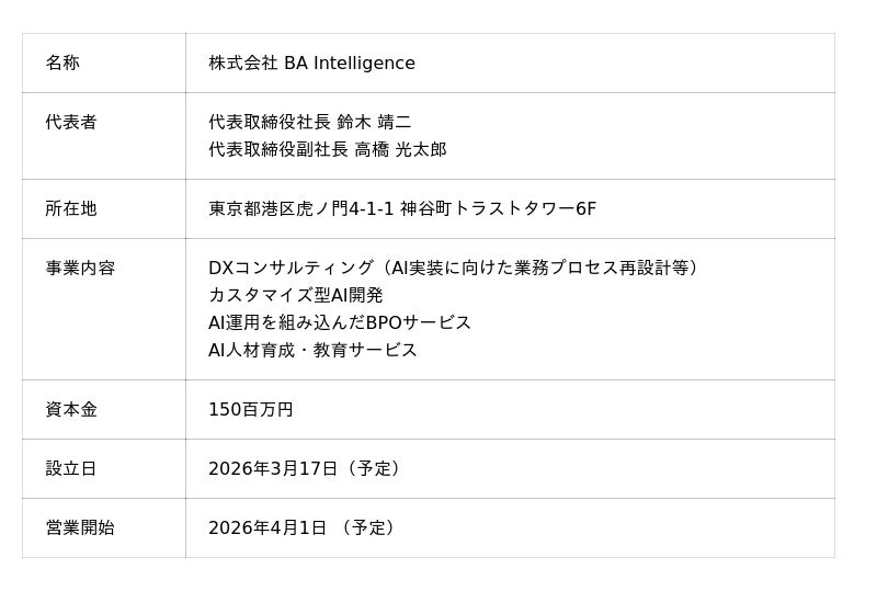 株式会社AVILEN(本社:東京都中央区、代表取締役:高橋 光太郎、以下「AVILEN」)は、高度な人材力と最先端テクノロジーを融合し、「総合BPOパートナー」としての強みを持つ株式会社ベルシステム24ホールディングス(本社:東京都港区、代表取締役 社長執行役員CEO:梶原 浩、以下「ベルシステム24」)と共同で、企業のバックオフィス業務におけるAIエージェント実装型のBPOモデル構築を目的とした合弁会社を設立することといたしました。