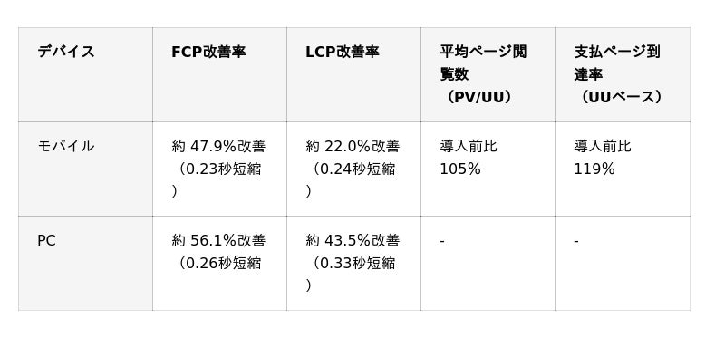 ~表示速度の改善により、購入行動を促進。支払いページ到達率は導入前比119%に~