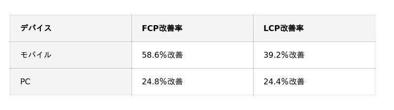 ※ FCP(First Contentful Paint)…Webページで最初のコンテンツが表示されるまでの時間を示すパフォーマンス指標