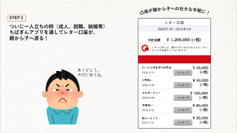 https://hansoku.co/)」にて、社員の考案した企画がゴールドを受賞したことをお知らせします。今回の受賞作品は、地域住民に寄り添い、伴走してきた株式会社千葉銀行の「便利でおトクな『ちばぎんアプリ』を知ってもらうためのアイデア」として、お金のやり取りに、親から子への想いを乗せるアイデアを企画したものです。