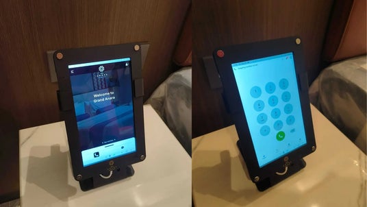 客室内通話グループでのご宿泊の場合、内線通話機能により、客室を離れたり、追加のデバイスを使用したりすることなく、それぞれの客室にいるゲスト間で直接通話することができます。