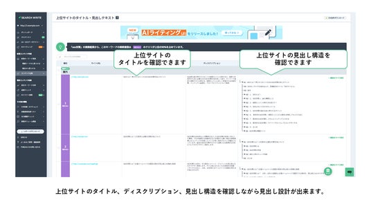 SEARCH WRITE コンテンツ立案機能 ※デモサイトのデータを使用