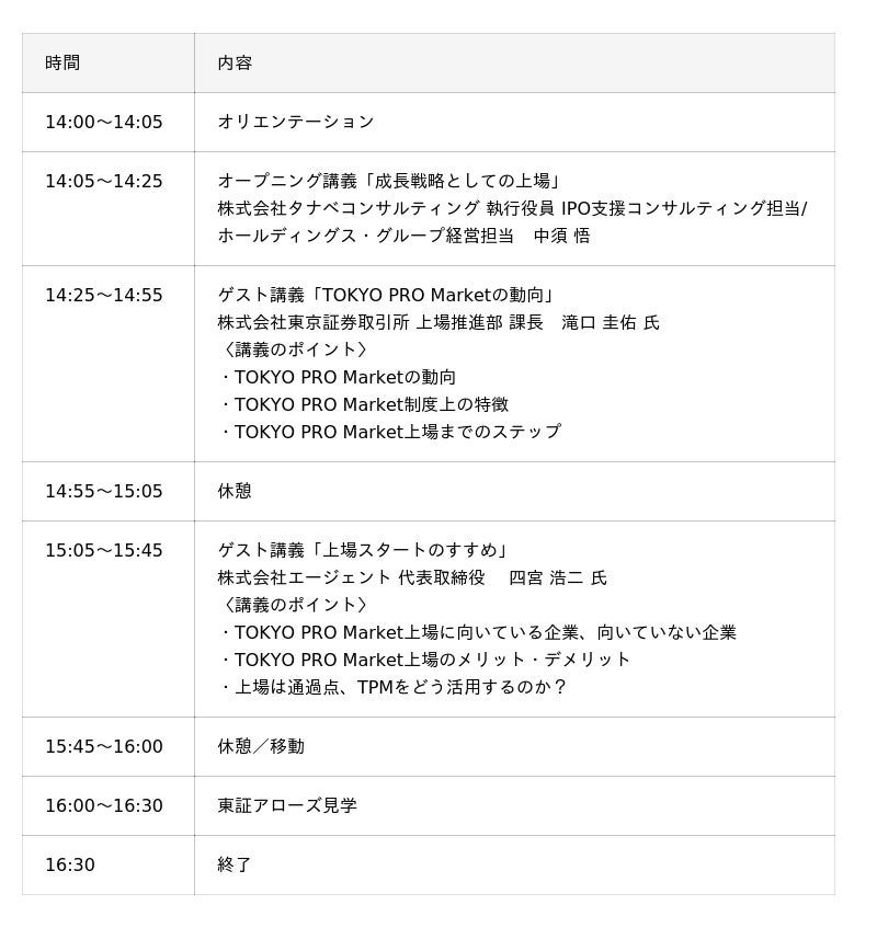 「上場を目指す経営者のためのTOKYO PRO Marketリアル講座」開催概要