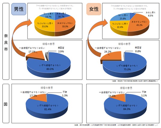 奈良市では、少子化に歯止めをかけるための支援を検討するため、令和5年8月、結婚している女性と18歳以上55歳未満の独身の方を対象に、「2023年奈良市結婚と出産に関する意識調査」を実施しました。
