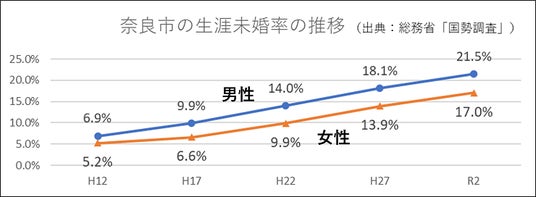 奈良市の生涯未婚率の推移(出典:総務省「国勢調査」)