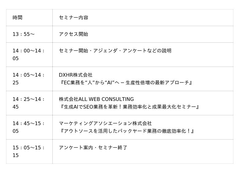 本セミナーでは、EC事業者が直面する「人材不足」や「EC業務の効率化」の課題に焦点を当て、最新の「AI導入による内製化」や「アウトソース導入」の効果的な活用方法を解説いたします。