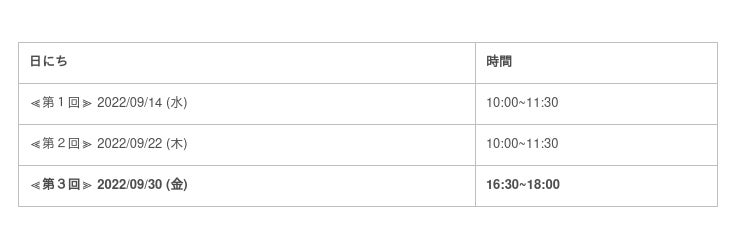 ・お申し込み期限:開催日4日前までとなります。