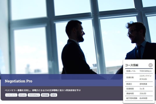 株式会社Aoba-BBT(所在地:東京都千代田区、代表取締役:柴田巌、以下Aoba-BBT)は、グローバルビジネスの現場で即戦力となる英語交渉スキルを習得できる新講座『Negotiation Pro』を開講いたしました。