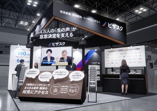 当社展示ブースでは、業界有識者に1時間からのインタビューができる「ビザスクinterview」をはじめ有識者の知見を効率的に収集できる各種調査サービスを複数ご紹介します。