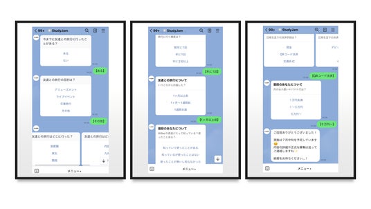 StudyJam公式LINE登録生徒に向けて一問一答形式でアンケートを配信