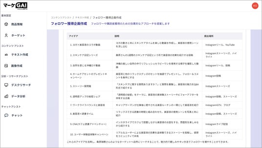 「マーケGAI」は、マーケターの業務を効率化することに特化した業務用生成AIツールです。デスクリサーチからデータ分析、コンテンツ生成など、多岐にわたるマーケ業務に対応し、業務効率化をサポートします。