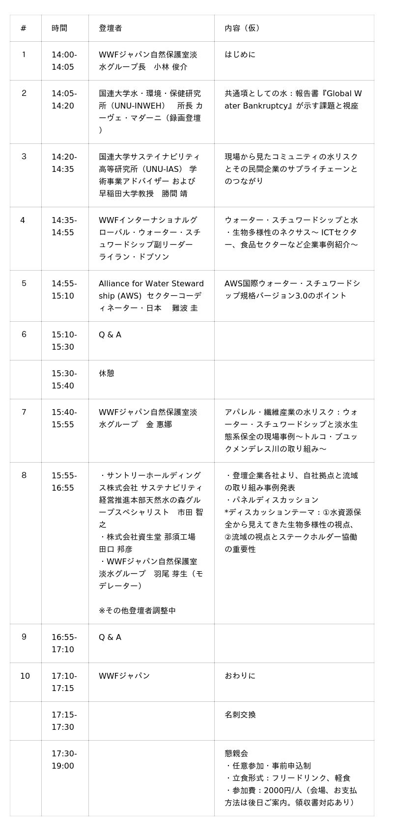 主催:公益財団法人世界自然保護基金ジャパン(WWFジャパン)、Alliance for Water Stewardship(AWS)