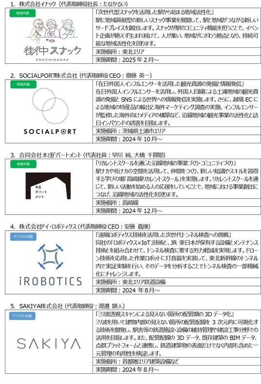 ○ JR東日本スタートアップ株式会社(代表取締役社長:柴田 裕)は、JR東日本とともにスタートアップ企業や優れた事業アイデアを有する方々との協業によるビジネス創造活動 「JR東日本スタートアッププログラム」を2017年から進めてきました。