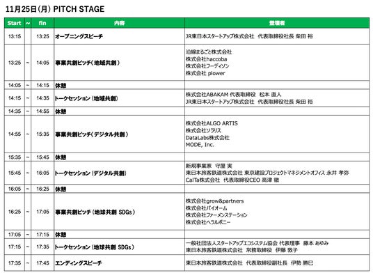 「PITCH STAGE」(11/25-26)登壇企業・タイムテーブル 参考資料【1】