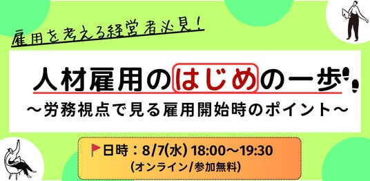 『人材雇用のはじめの一歩~労務視点で見る雇用開始時のポイント~』を8月7日(水)にオンライン開催します。(参加費:無料)