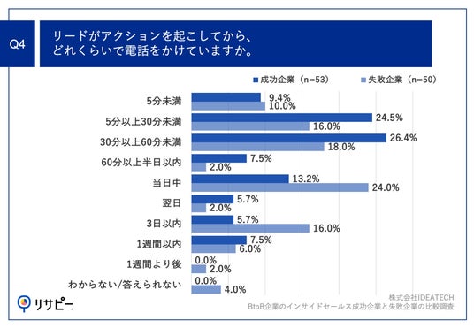 ~成功企業の60.3%が、リードのアクションから「60分未満」で電話を実施、失敗企業より16.3ポイント高い結果に~