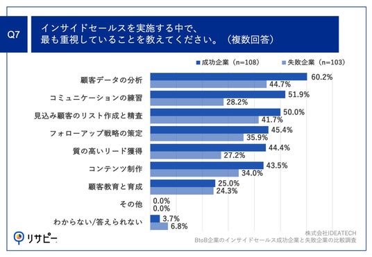 03|インサイドセールス実施において、成功企業・失敗企業ともに「顧客データの分析」を重要視