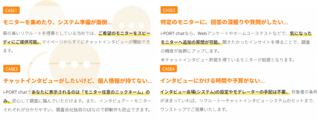 i-PORT chatなら、Webアンケートやホームユーステストなどで、気になったモニターへ追加の質問が可能。聞きたかったインサイトを得ることで、調査の精度が抜群にアップします。