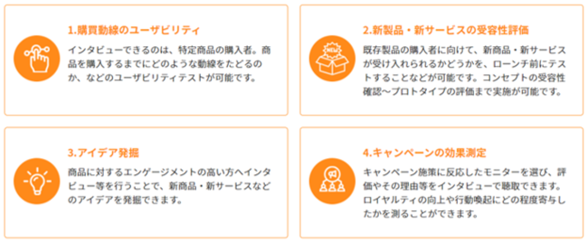 インタビューできるのは、特定商品の購入者。商品を購入するまでにどのような動線をたどるのか、などのユーザビリティテストが可能です。