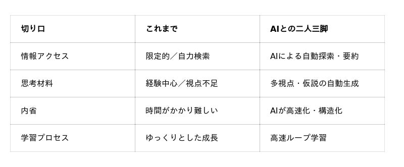 このプロセスにより、人間は「情報収集」や「整理」といったタスクから解放され、より本質的な「自身の価値観との接続」や「人生における意味づけ」、そして「納得感のある意思決定」に集中することが可能になります。